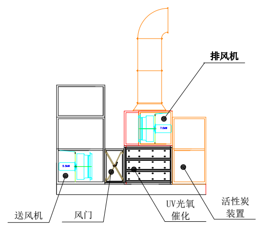 廢氣經過地棉過濾、進風口的M式過濾網過濾及吸附塔內玻璃纖維棉過濾后,進入活性炭吸附塔進行吸附,之后進入光氧催化反應柜進行催化處理,最后經風機抽排到戶外,有機廢氣排放達到或超過國標要求。